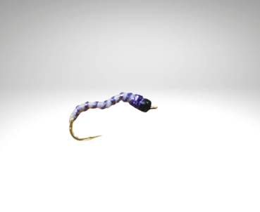 Der Körper hier etwas dicker ausgeprägt aus Neon weiss, mit einer schwarzen Glasperle und Glitzer Lila.