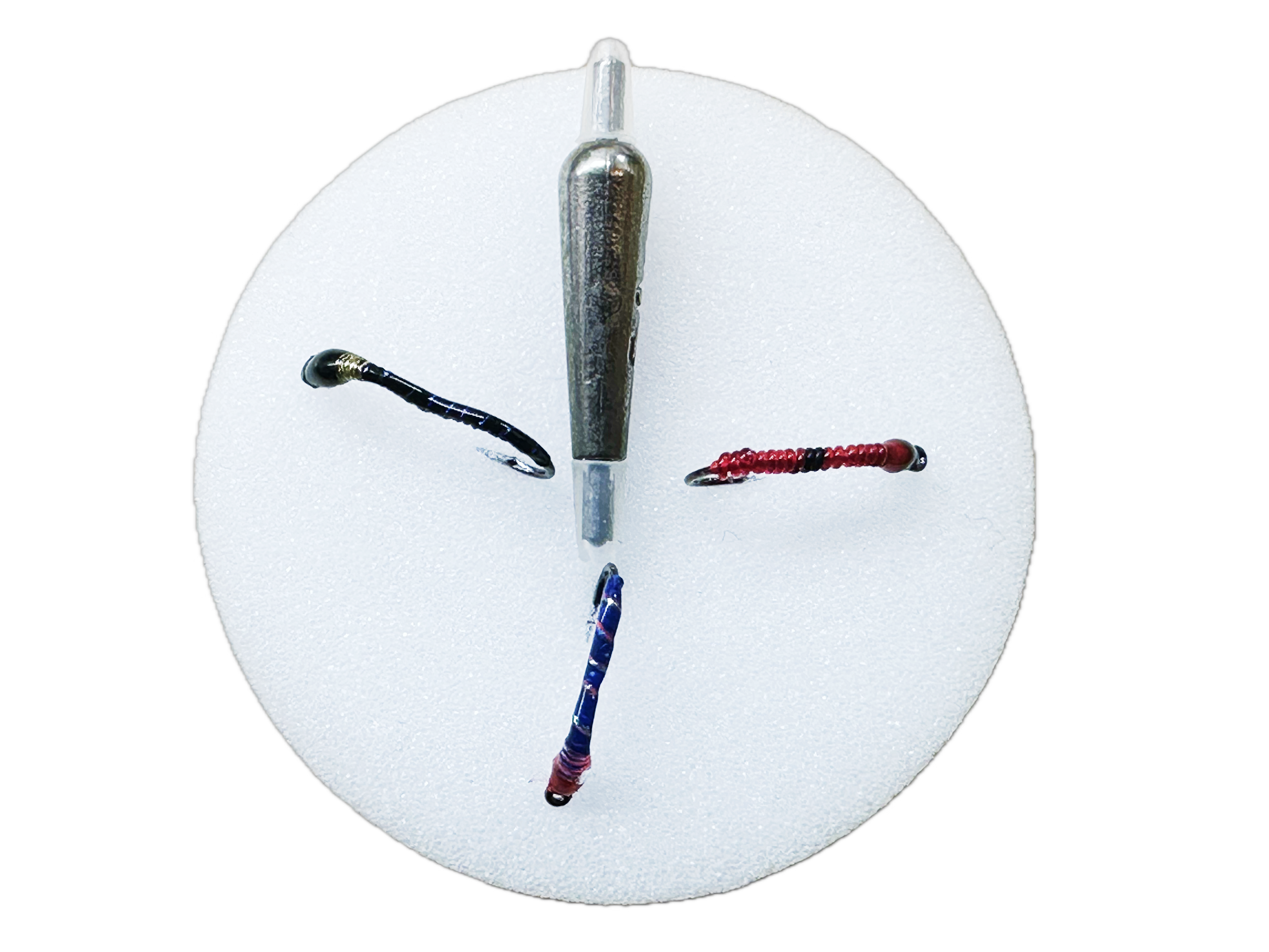 Mit nachfolgenden Nymphen von unten nach oben gebunden